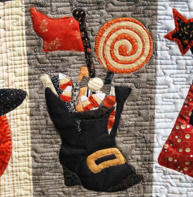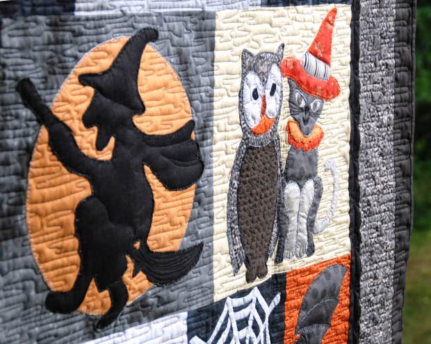 It was such a joy to quilt this spooky halloween themed quilt. I love how the quilting ties together the separate blocks and makes the little details pop.